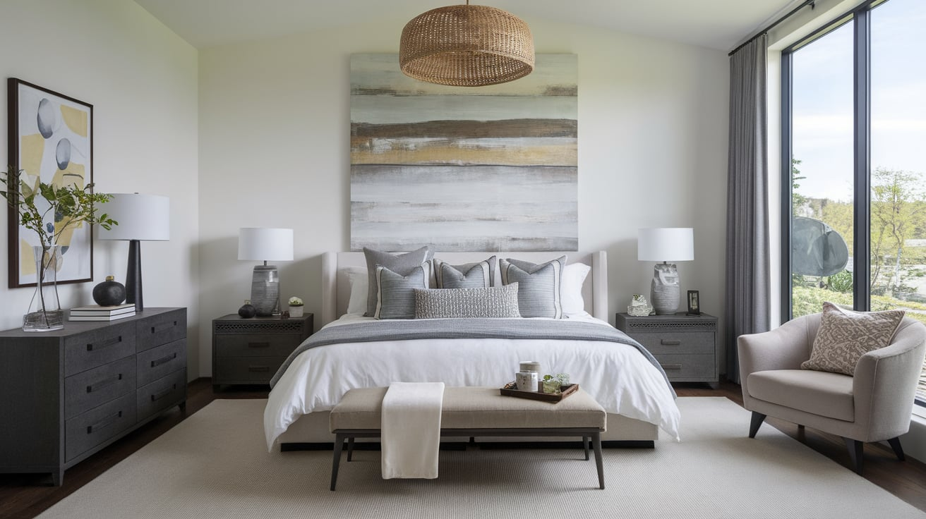 Contemporary bedrooms often rely on subtle layering to create visual depth.